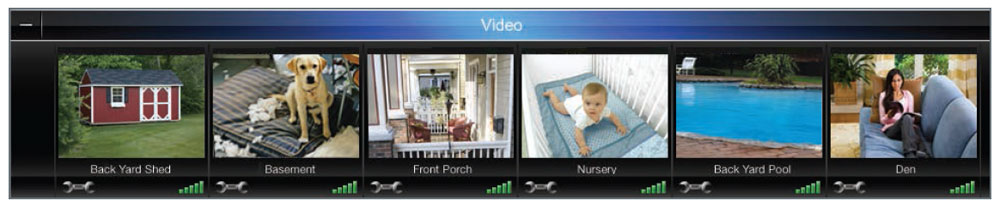 You can view up to four indoor or outdoor IP cameras around your home on the touchscreen,